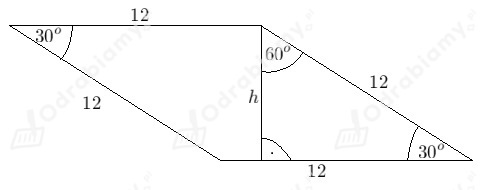 Wiemy, że podstawą graniastosłupa jest romb o kącie ostrym 30° i boku 12 cm. Wykonajmy rysunek pomocniczy: