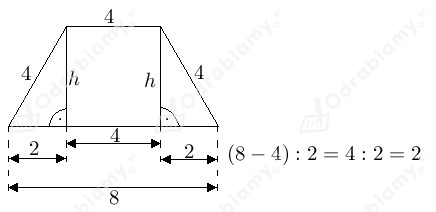 Korzystając z twierdzenia Pitagorasa obliczymy, jaką długość ma wysokość trapezu: