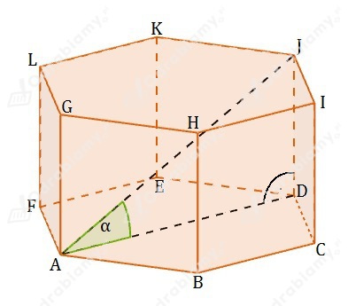 Przekątną graniastosłupa zaznaczono przerywaną linią.