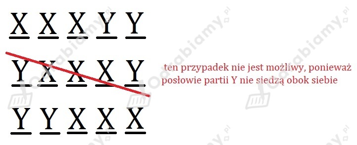 a) Zastanówmy się jak mogą siedzieć posłowie tych partii, jeśli posłowie tej samej partii siedzą koło siebie.