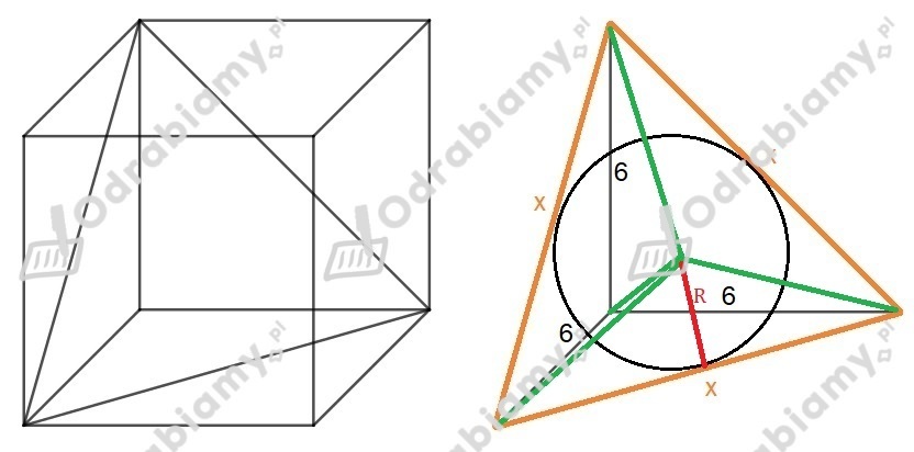Kąt nachylenia przekątnej e do podstawy wynosi , zatem: